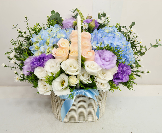 수국 장미 바구니