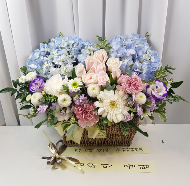 수국 장미 바구니