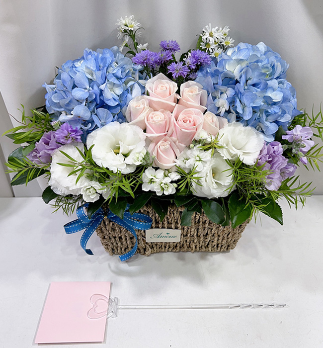 수국 장미 바구니