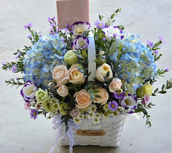 수국 장미 바구니