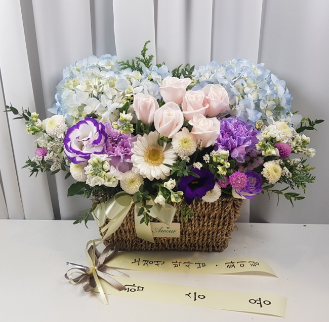 수국 장미 바구니