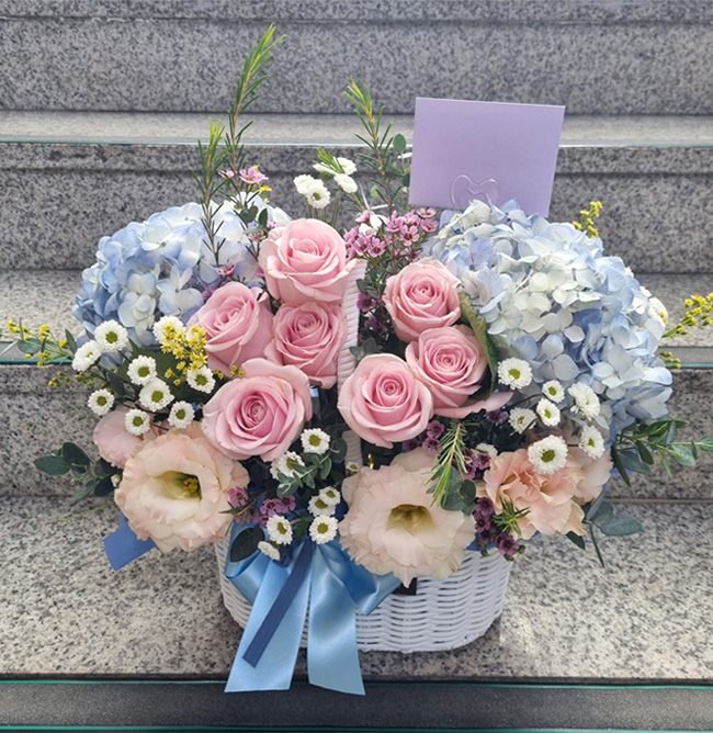 수국 장미 바구니
