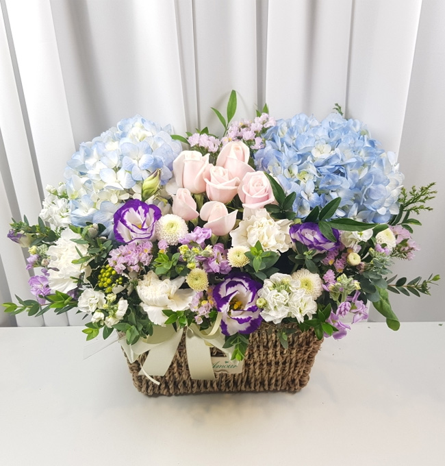 수국 장미 바구니