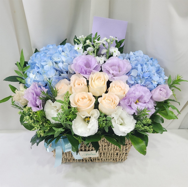 수국 장미 바구니