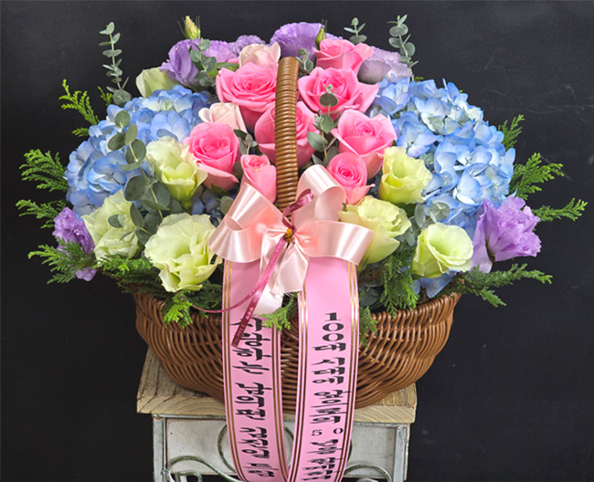 수국 장미 바구니