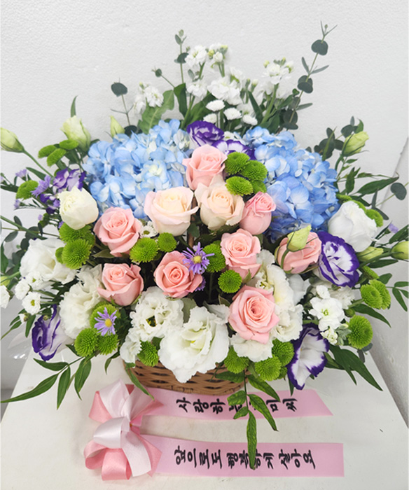 수국 장미 바구니
