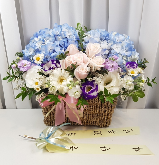 수국 장미 바구니