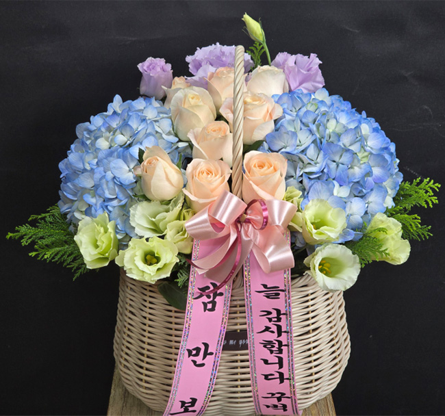 수국 장미 바구니