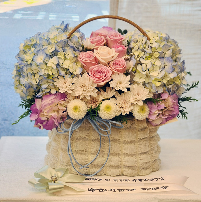 수국 장미 바구니