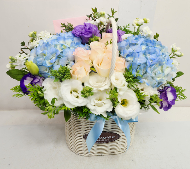 수국 장미 바구니