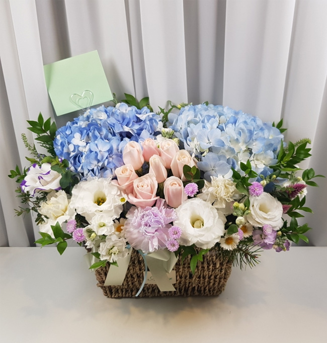 수국 장미 바구니