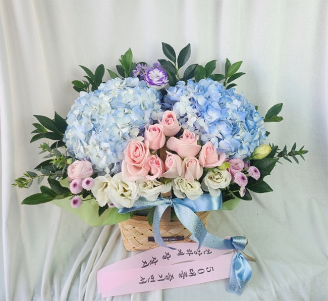 수국 장미 바구니