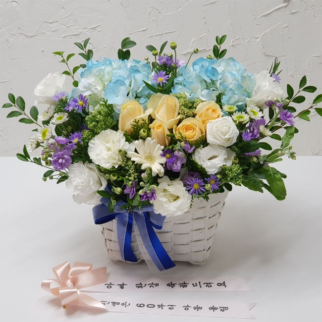 수국 장미 바구니