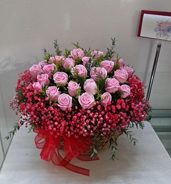 TV소개된 그 칼라안개와 핑크장미 꽃바구니