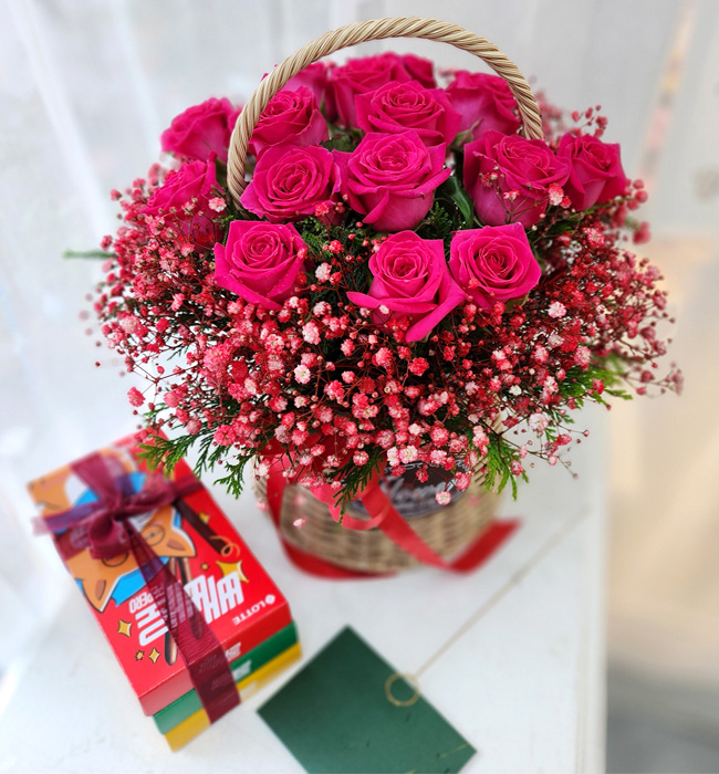 고급스러운 칼라안개 장미꽃바구니