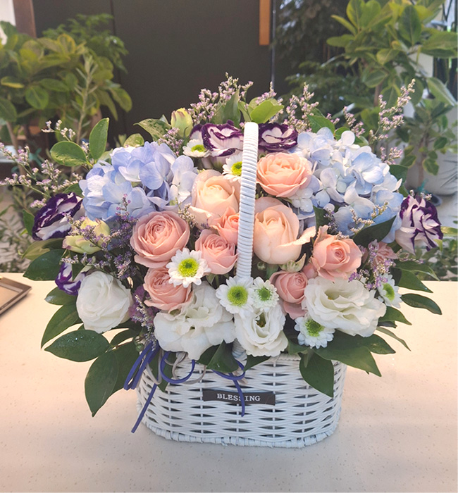 수국 장미 바구니