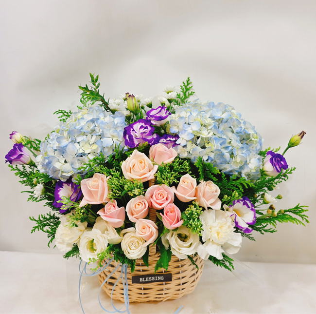 수국 장미 바구니