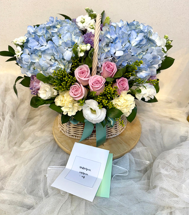 수국 장미 바구니