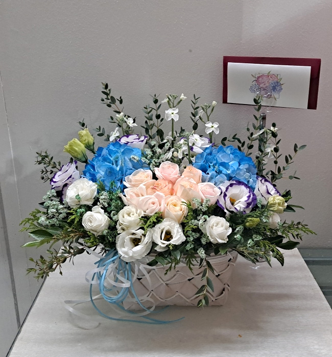 수국 장미 바구니