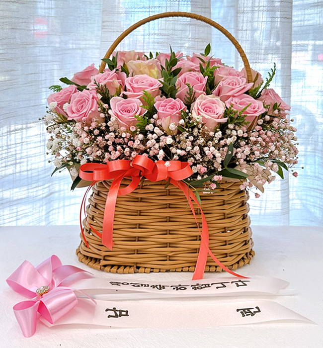 TV소개된 그 칼라안개와 핑크장미 꽃바구니