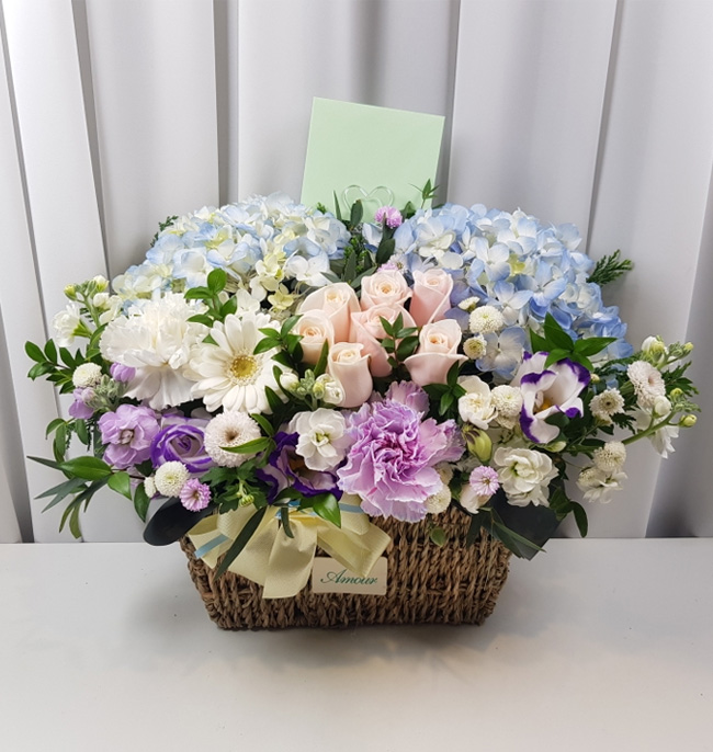 수국 장미 바구니