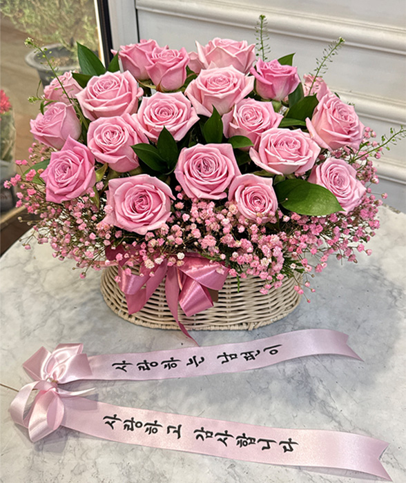TV소개된 그 칼라안개와 핑크장미 꽃바구니