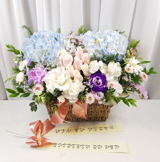 수국 장미 바구니