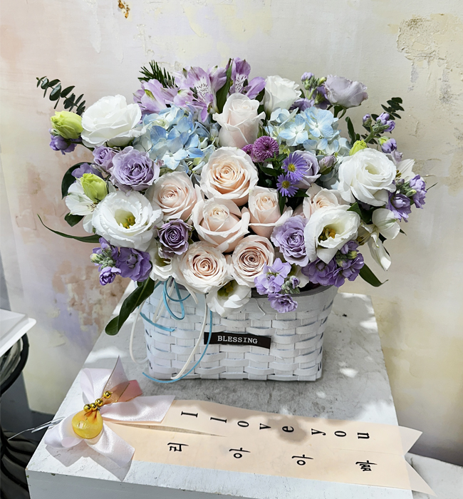 수국 장미 바구니