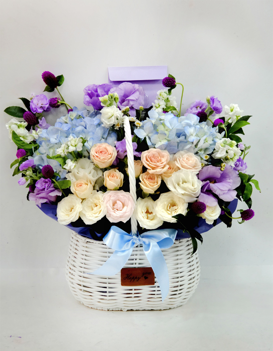 수국 장미 바구니
