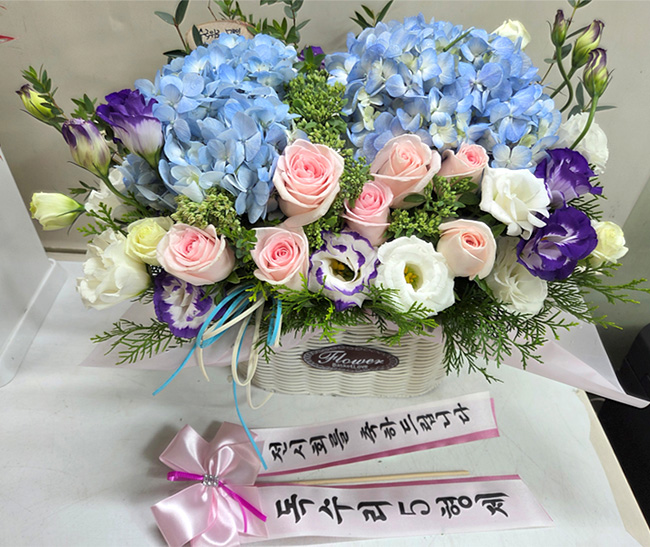 수국 장미 바구니