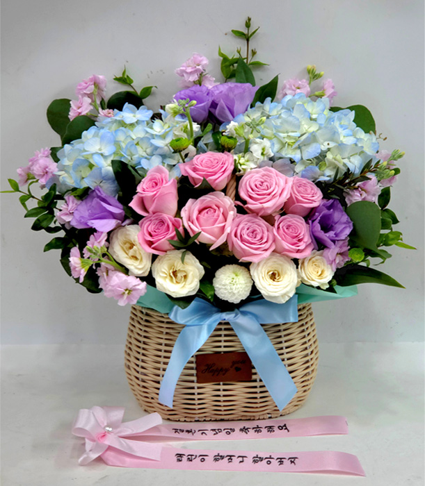 수국 장미 바구니