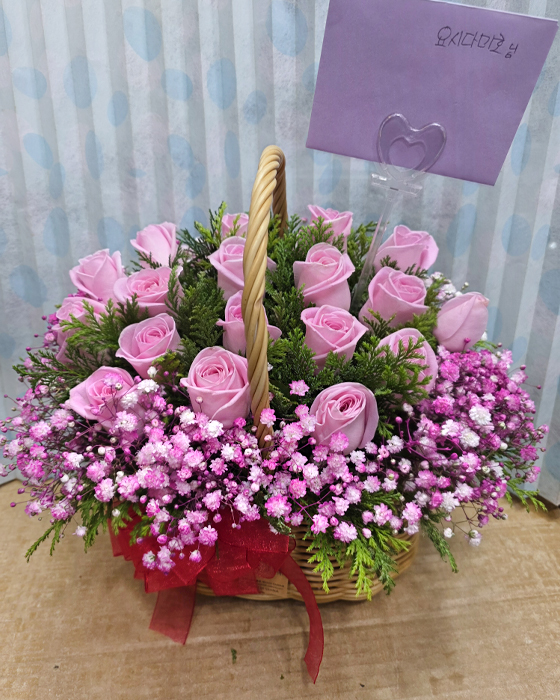 TV소개된 그 칼라안개와 핑크장미 꽃바구니