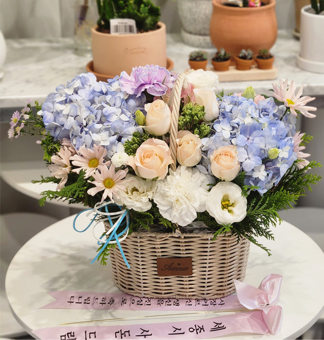 수국 장미 바구니