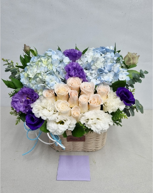 수국 장미 바구니