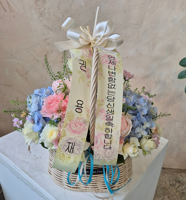 수국 장미 바구니