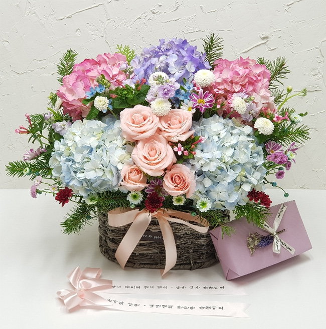 화사한 수국바구니(빼빼로 포함)