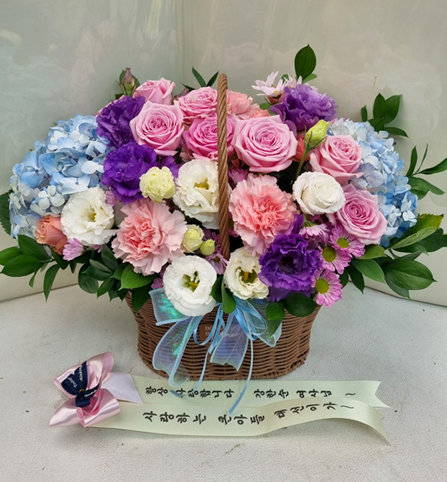 수국 장미 바구니