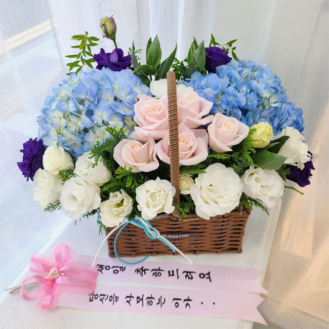 수국 장미 바구니