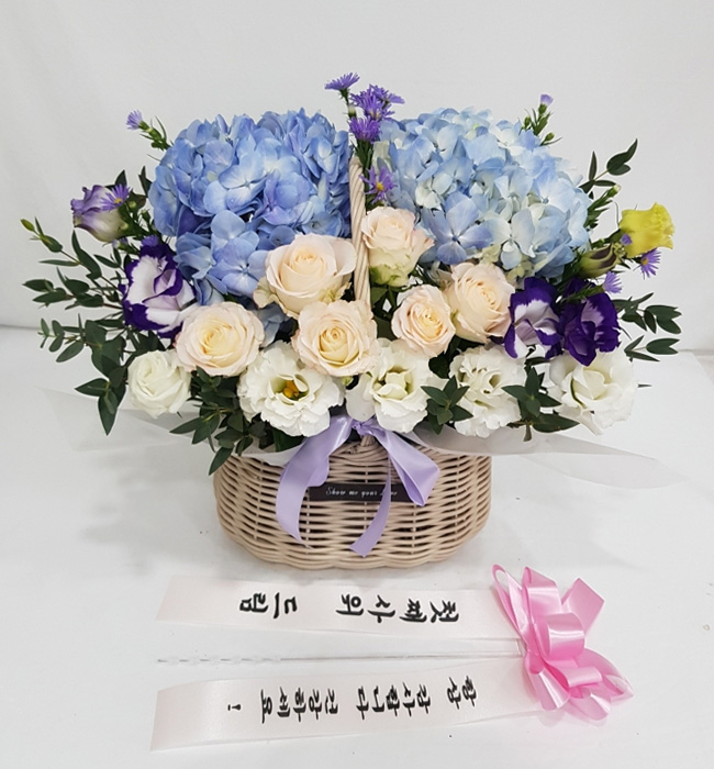 수국 장미 바구니
