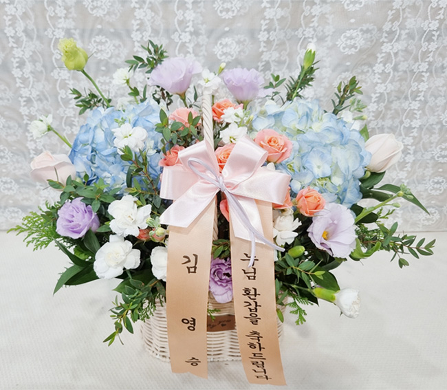 수국 장미 바구니