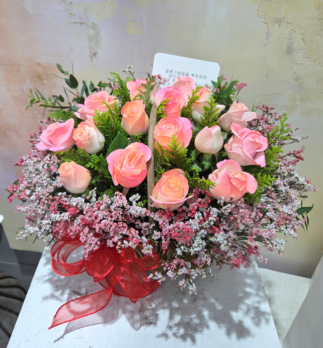 TV소개된 그 칼라안개와 핑크장미 꽃바구니