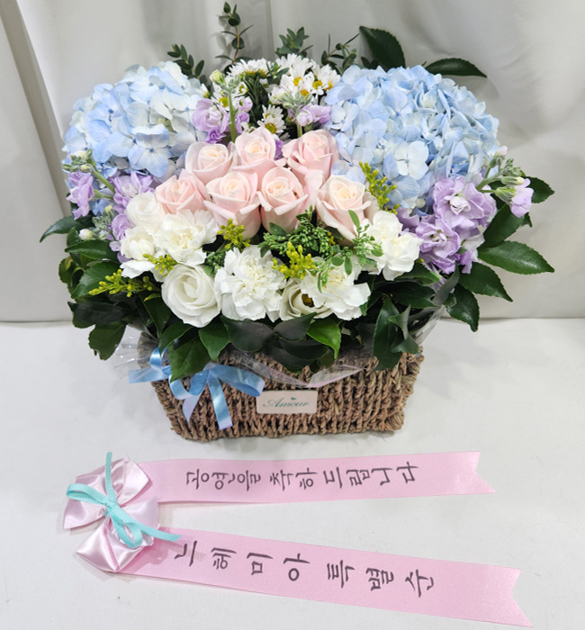 수국 장미 바구니