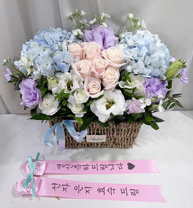 수국 장미 바구니