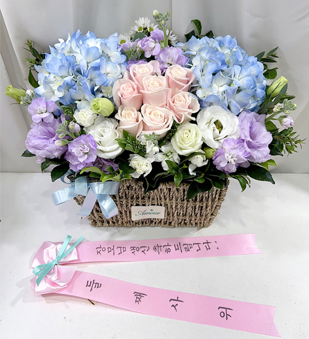 수국 장미 바구니