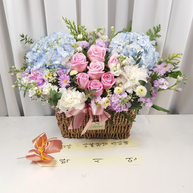 수국 장미 바구니