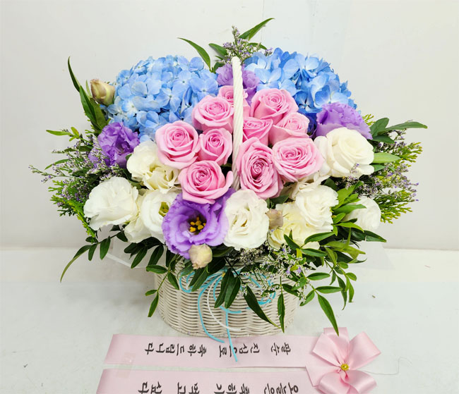 수국 장미 바구니