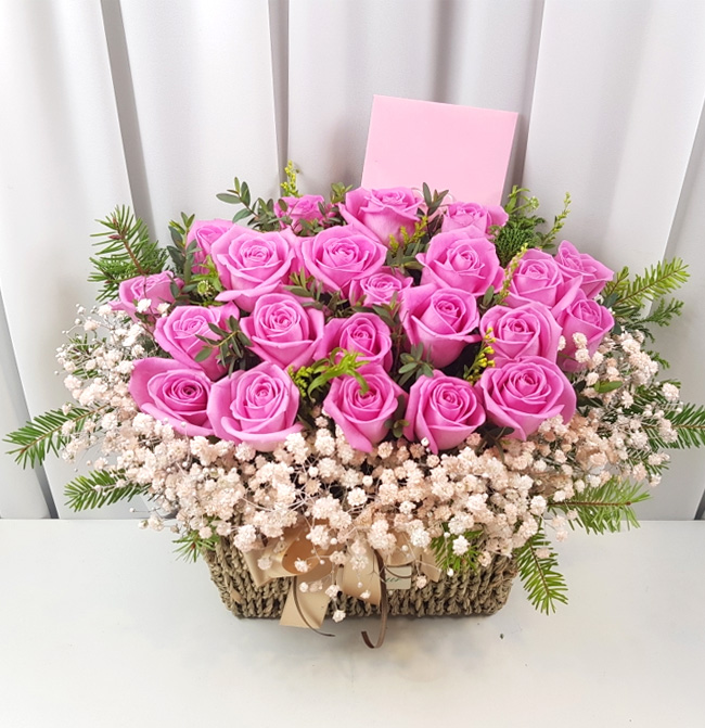 TV소개된 그 칼라안개와 핑크장미 꽃바구니