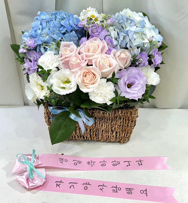수국 장미 바구니