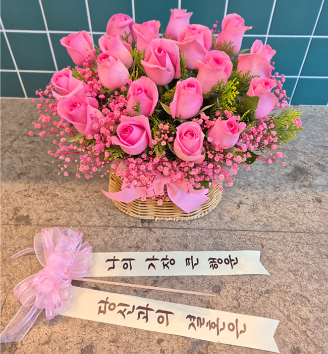 TV소개된 그 칼라안개와 핑크장미 꽃바구니