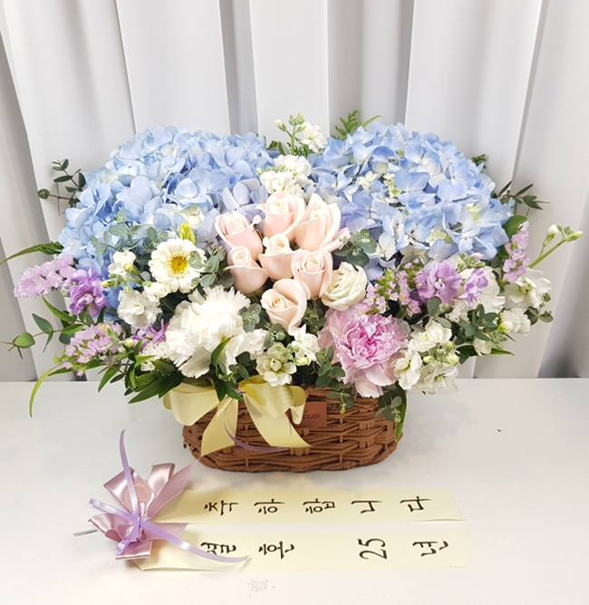 수국 장미 바구니
